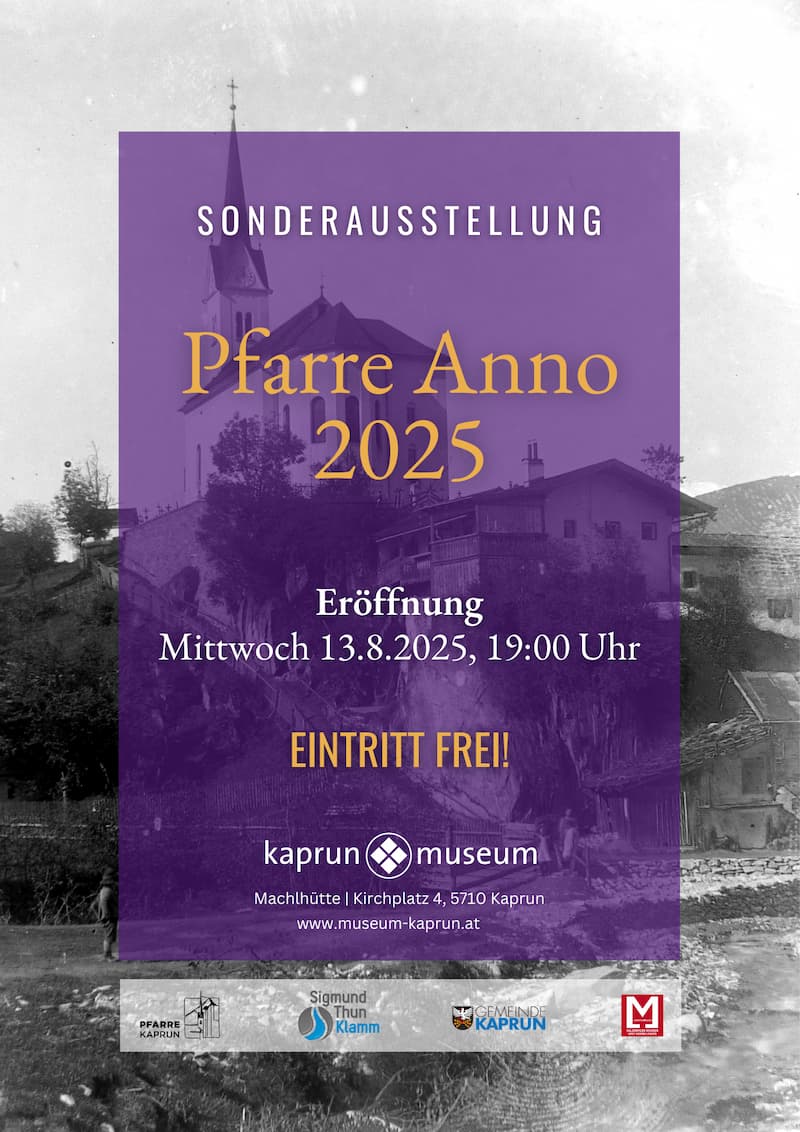 Dieses bedeutende Jubiläum bildet den Anlass für die neue Sonderausstellung, die ab 13. August 2025 im Kaprun Museum zu sehen sein wird. Die Ausstellung beleuchtet nicht nur die kirchliche Entwicklung, sondern zeigt auch, wie sehr die Pfarre immer Teil des gesellschaftlichen und kulturellen Lebens im Ort war – und bis heute ist.