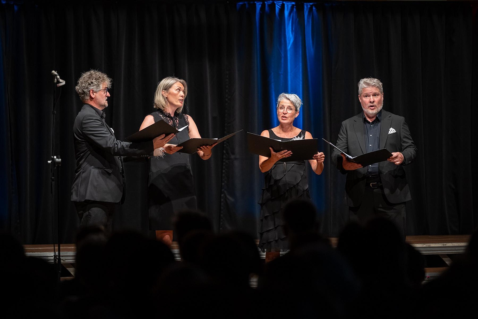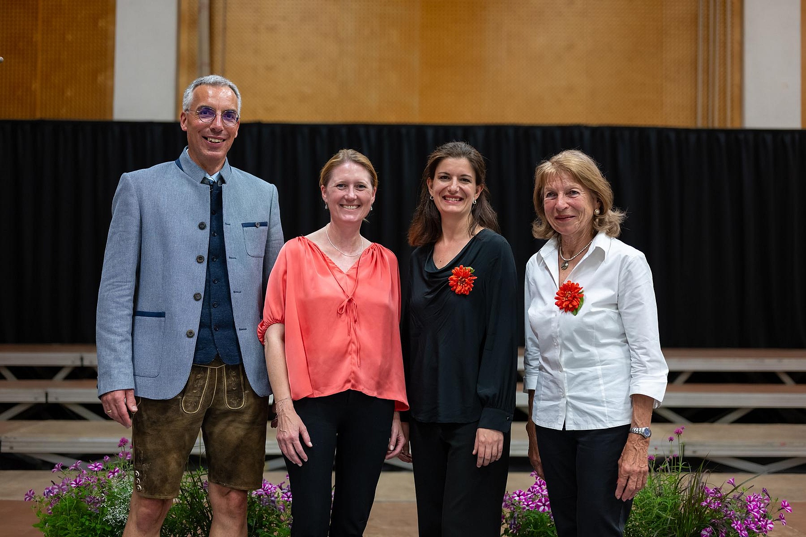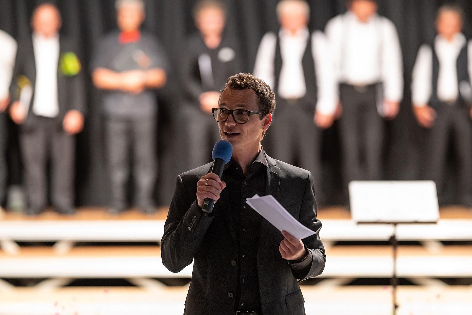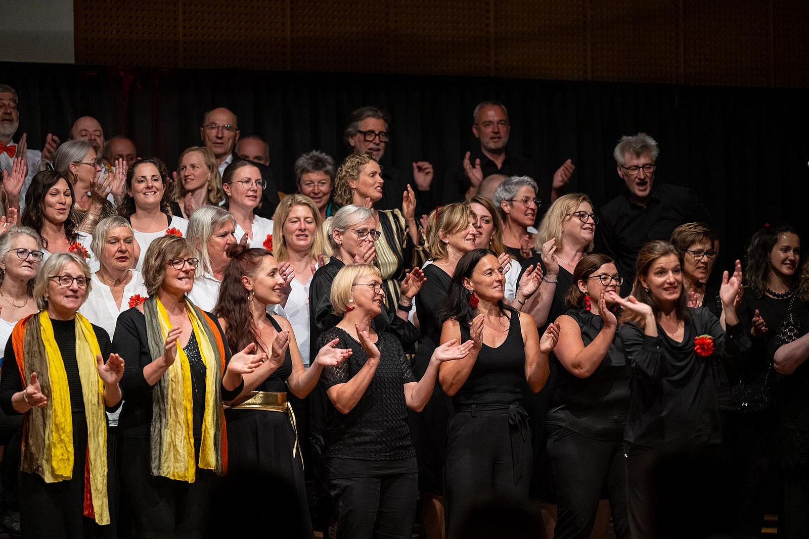In der reich gefüllten Halle begann der Abend mit der Darstellung des ehemaligen Männerchores Concordia und dem Gesang des eigens damals komponierten Mottos. Durch den Krieg gab es leider wenig Männer und ab 1950 entschloss man sich auch Frauen im Chor aufzunehmen, woraus die heutige „Liedertafel Seekirchen“ entstand, die gleich als erstes den Reigen der darbietenden Gruppen eröffnete. Durch den Abend führte als Moderator Dominikus Forsthuber, der sehr unterhaltsam die mitwirkenden Chöre und Ensembles vorstellte und deren Stücke ankündigte. So entstand ein abwechslungsreiches und vielseitiges Programm, bei dem sich jede/r Zuschauer:in wiederfinden konnte. Man spürte die Freude an der Musik und die Hingabe, mit der die Sänger:innen dieses Fest musikalisch gestalteten.