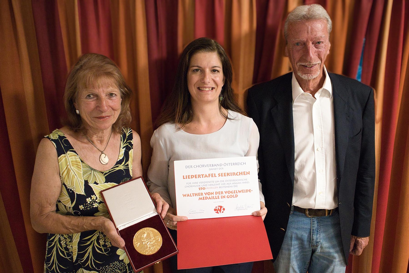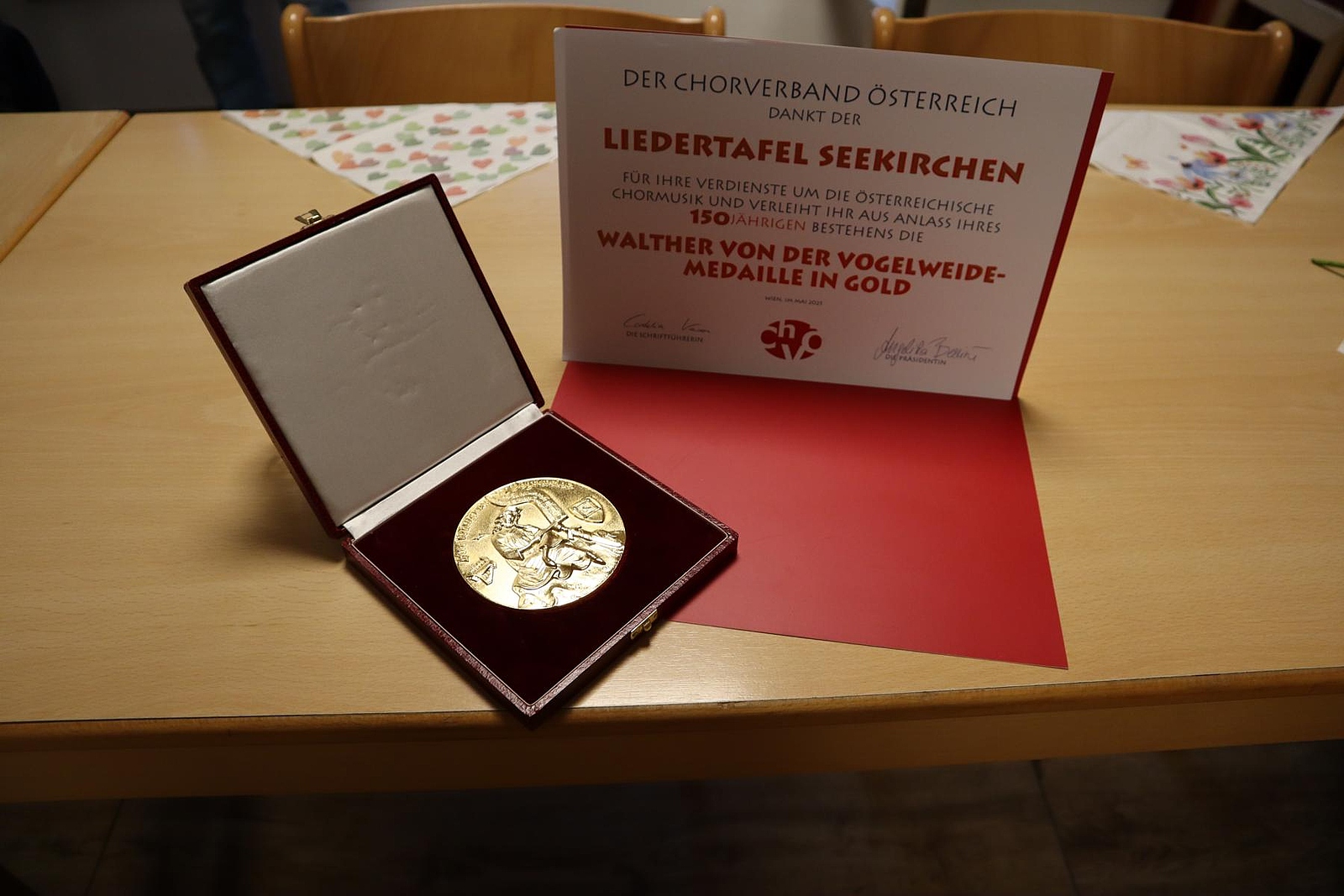 Eine ganz besondere Ehre wurde der Liedertafel Seekirchen durch die Überreichung der „Walther von der Vogelweide“ - Medaille in Gold mit Urkunde durch die Präsidentin des Österreichischen Chorverbandes, Frau Mag. Angelika Berrini und des Bezirkschorleiters Herr Jan Steffen Bechtold zuteil.