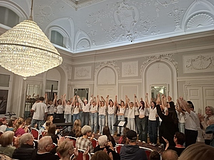 Nach einem kurzen Stopp am Buffet ging es in nach Minimundus: Einmal um die Welt in nur wenigen Stunden – wir haben mehr Sightseeing gemacht als je zuvor. Doch dann wurde es ernst: Konzert im Spiegelsaal bei der "Langen Nacht der Jugendchöre"! Als letzter Chor des Abends haben wir den Raum nicht einfach betreten, sondern gleich mal abgerissen.