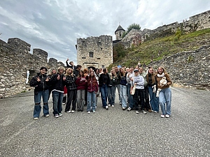 Der zweite Tag stand ganz im Zeichen von Workshops: neue Kulturen kennenlernen, mit großartigen Musiker:innen arbeiten oder sich beim Trommeln die Seele aus dem Leib spielen. Danach wartete der Affenberg und eine atemberaubende Flugshow auf der Burg Landskron auf uns.