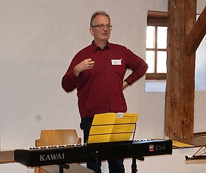 Wie gewohnt war das Angebot des Goldegger Seminars auch heuer vielfältig. Die fast 70 Teilnehmenden waren aufgeteilt in die Seminare „Chorleiter“ und „Chorsänger“. Die Referenten probten mit beiden Gruppen sowohl getrennt als auch gemeinsam im Plenum. Durch das hautnahe Miterleben der Probenarbeit der beiden Referenten, die Möglichkeit, nach eigener Wahl einzelne Lieder oder Liedpassagen zu dirigieren und Detailfragen individuell mit den Referenten zu besprechen, bot sich für jeden Chorleiter im Privatissimum die Chance, wertvolle Tipps und Anregungen für die eigene Arbeit in den Chören aus Goldegg mitzunehmen.