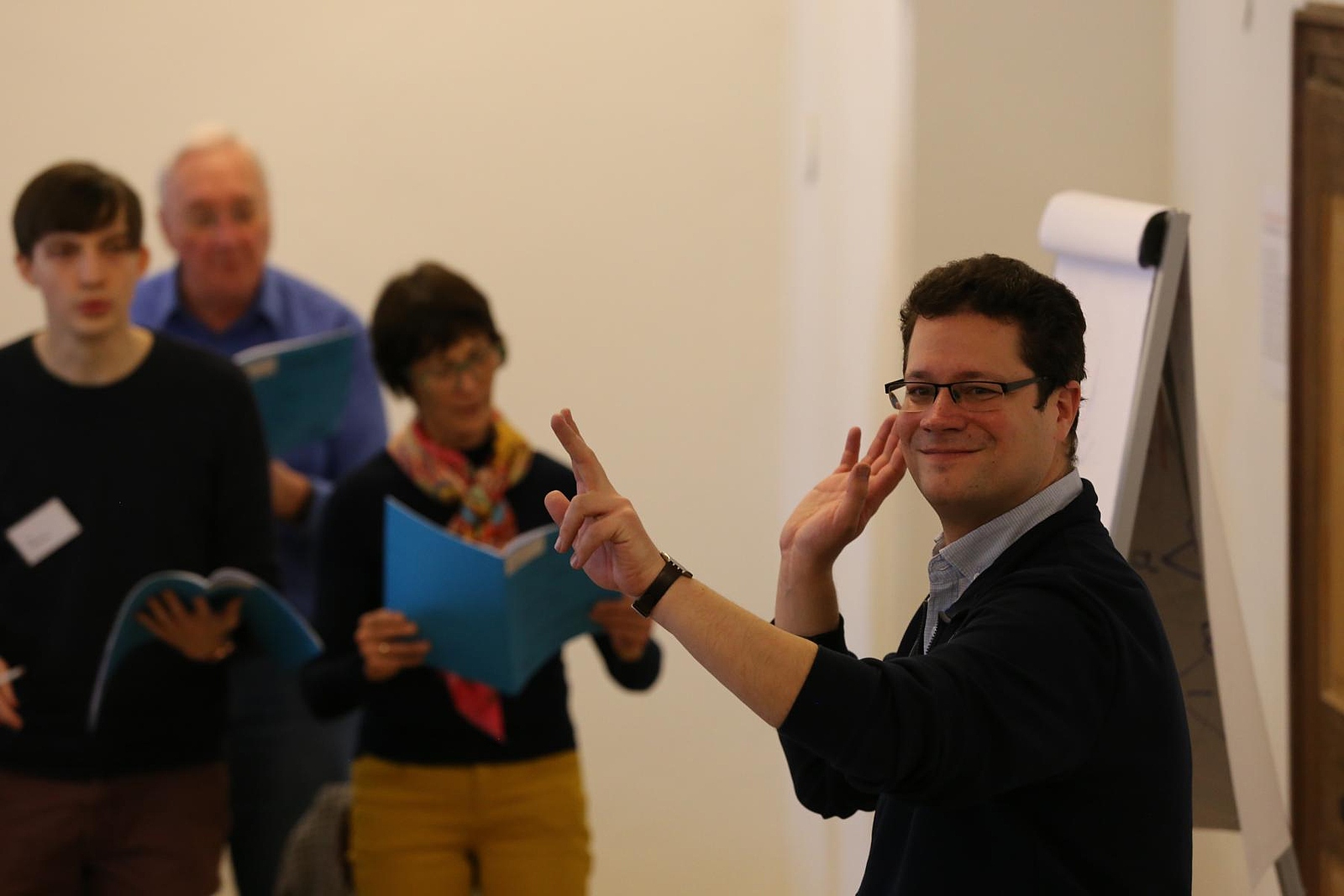 Als jemand ohne Erfahrung mit Chorleitung wollte ich mich eher an den sängerischen Aspekt des Seminars fokussieren. Nachdem ich von anderen Teilnehmern nach der ersten Einheit viel Positives über das Workshop zu Dirigieren für Anfänger gehört habe, entschied ich mich aber, auch spontan mitzumachen. Hannah, die Leiterin, hat sich sehr bemüht, den Workshop lehrreich und unterhaltsam zu machen. Dabei war das Lernen der Bewegungen nur ein Bestandteil davon. Unter anderem lernten wir über unterschiedliche Arten von Einsätzen, wie man komplexere Taktarten zusammensetzt, wie man fließende Bewegungen macht sowie die korrekte Haltung beim Dirigieren. Wir hatten auch mehrere Möglichkeiten, die anderen Teilnehmer zu dirigieren und herauszufinden, wo wir uns noch verbessern können. Während und nach diesem Workshop fing ich an, die Chorleiter im Seminar mit einem neuen Interesse genauer zu beobachten.
