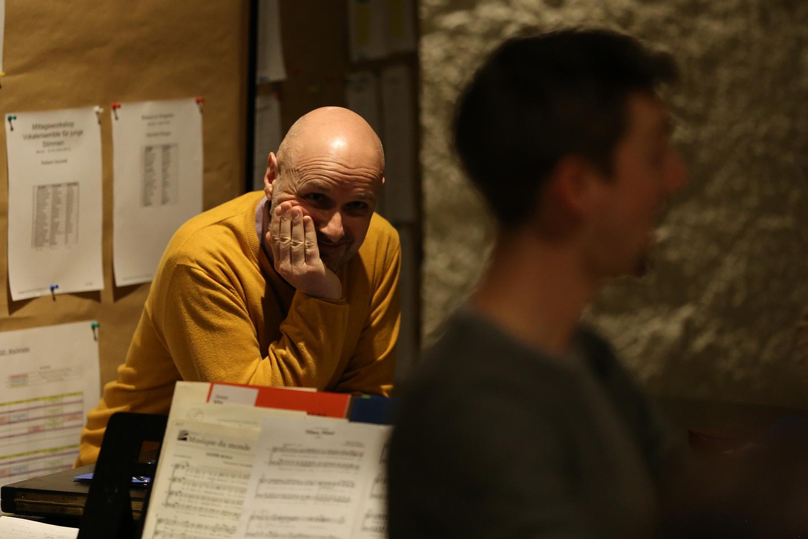 Nach einer Einleitung von der Seite von Ute Buchner, der tollen Hauptorganisatorin des Seminars fing nun der musikalische Teil des Tages an. In den Proben lernten wir die zwei Dozenten, Michael Grohotolsky und Josep Vila i Casañas kennen. Beide haben eine umfangreiche Auswahl von Liedern mit sich gebracht, die wir im Laufe der Woche einstudiert haben. Es war viel Blattlesen und spontanes Lernen angesagt, trotzdem haben es sowohl Michael als auch Josep geschafft, uns dazu zu bringen, die Lieder von Anfang an auch zu interpretieren. Von emotionalen Pop Balladen wie Run to you von Pentatonix bis zu selbst komponierten sakralen Stücken (In Paradisum, Sanctus, Benedictus) und Ohrwürmern wie Nyon Nyon, die noch nachts im Bett auf Dauerschleife im Kopf blieben, war das gesamte Spektrum von unterschiedlichen Genres dabei. Jedes Mal dass wir einen ersten verzweifelten Durchlauf von einem Stück geschafft haben, wartete hinter den Noten eine neue Erfahrung auf mich. Jedes Stück hatte etwas anzubieten dem ich bisher noch nicht begegnet bin. Außerdem lernten wir mit jedem Stück Michael und Josep ein bisschen besser kennen.