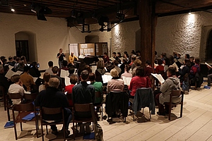 Das Seminar hatte aber nicht nur Proben anzubieten. Eine Reihe von Workshops stand für jeden zur Auswahl. Außerdem gab es Stimmbildung bei unterschiedlichen Teilnehmern des Kurses und Privatissima bei den Dozenten.