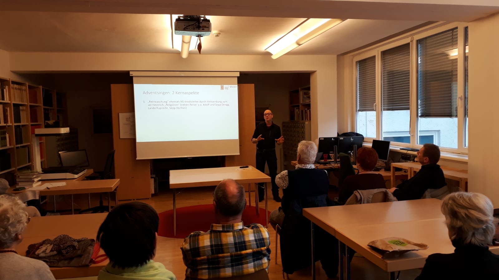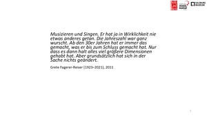 Im Fazit und der anschließenden Diskussion unterstrich Dreier-Andres die beiden Kernaussagen, die sich anhand der Person Tobi Reiser ergäben: Einerseits das Lernen aus der NS-Vergangenheit und der Instrumentalisierung von Volksmusik, andererseits die gleichzeitige Akzeptanz des künstlerischen Werkes. Wichtig sei ihm, so Dreier-Andres, dass nicht das eine das andere aufhebe: