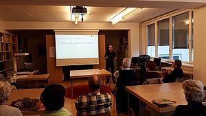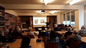 Der voll besetzte Lesesaal im Studiengebäude Wissenszentrum Alpenstraße des Salzburg Museum zeugte vom großen Interesse an der Veranstaltung. Das Salzburger Volksliedwerk bedankt sich beim Team des Salzburg Museums für die gute Kooperation, insbesondere bei Barbara Hagen-Walther (Moderation), Cassandra Burgstaller (Organisation vor Ort), Judith Waizenegger (Organisation hinter den Kulissen) und Andreas Zechner (Fotos).
