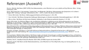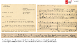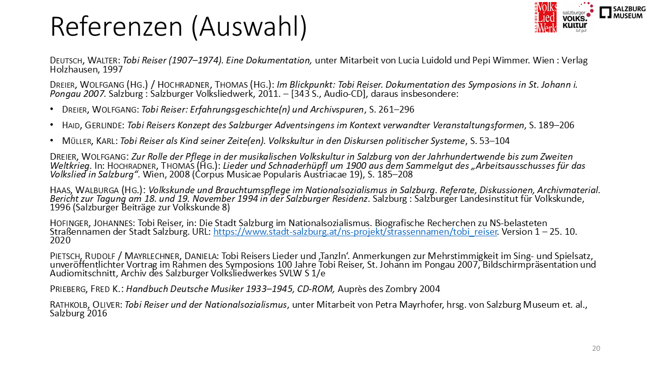Referent Wolfgang Dreier-Andres widmete sich im Museumsgespräch vom 25.11.2025 neben der gut aufgearbeiteten Biografie Tobi Reisers, deren Letztstand Johannes Hofingers Historikerbericht zur Tobi-Reiser-Straße darstellt, dem Werk und der Werkrezeption Reisers. Aus musikwissenschaftlicher Sicht wurden vor allem auch Konzepte von Volksmusik im Salzburg der 1930er-Jahre bis in die heutige Zeit hinein kontextualisiert.