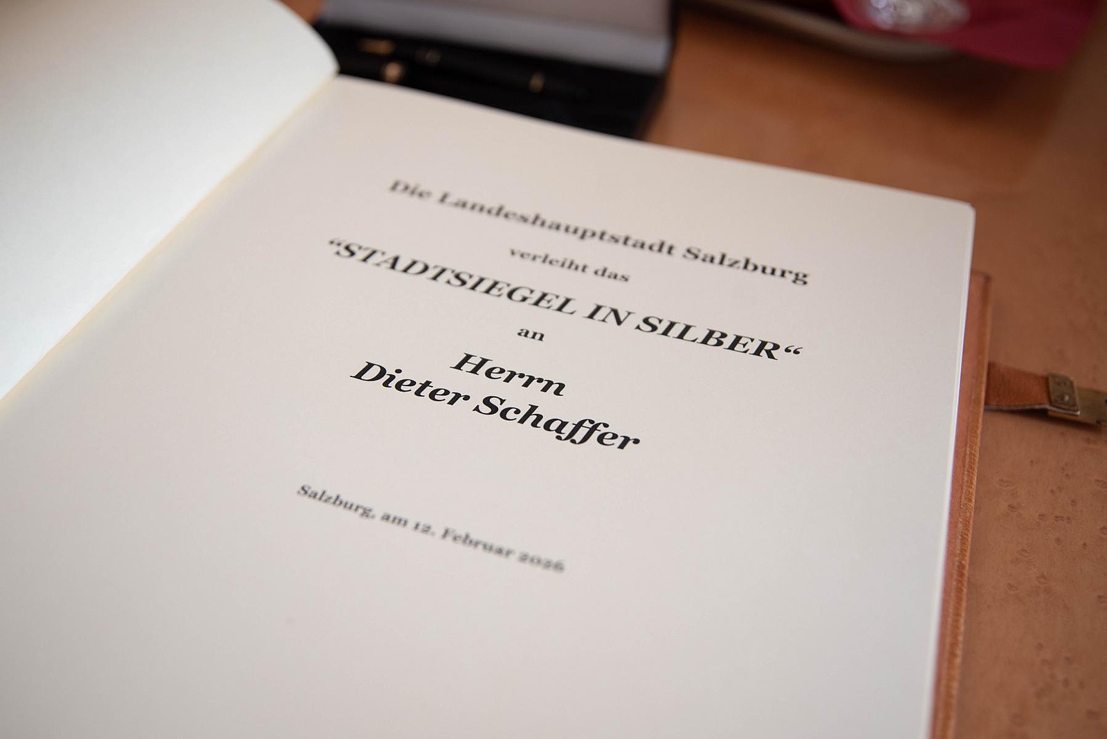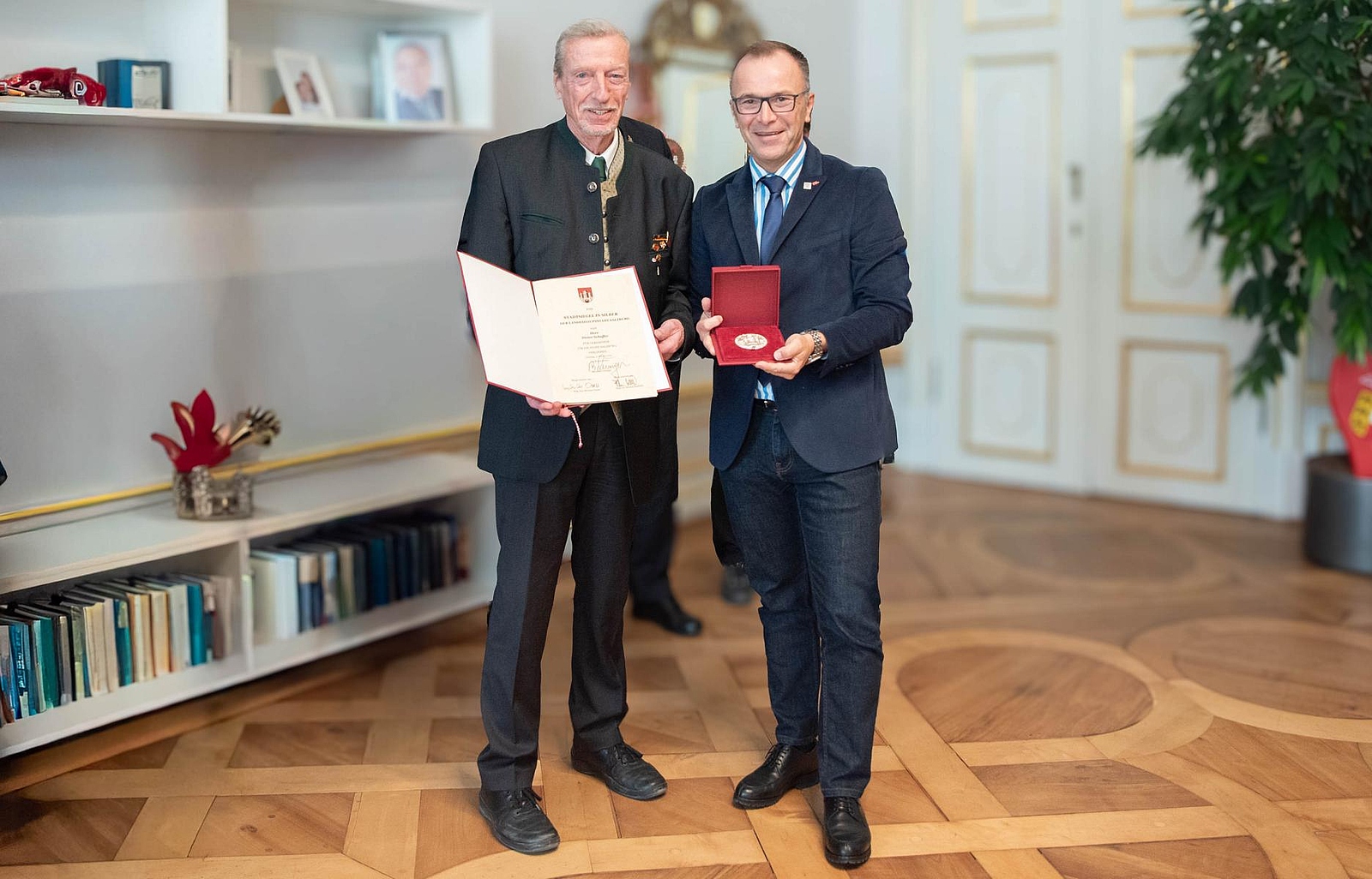 Bürgermeister Bernhard Auinger hat am Donnerstag, 12. Februar 2026, im Schloss Mirabell das „Stadtsiegel in Silber“ an Dieter Schaffer überreicht. Die Verleihung erfolgte im Rahmen eines Ehrungsfestakts in Anwesenheit von Magistratsdirektor Maximilian Tischler. Mit der Auszeichnung würdigt die Stadt Salzburg das langjährige Engagement von Dieter Schaffer für den Chorgesang und die Chorkultur in Stadt und Land Salzburg.