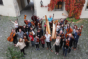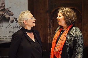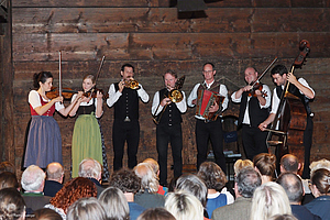 Stets impulsive, virtuose und mitreißende Begleiterinnen fand die vielschichtige Veranstaltung im jungen Streicher-Kollektiv Messis Cellogruppe aus dem Bregenzerwald, das die einzelnen Themenfelder musikalisch einleitete, nicht zuletzt mit Carl Michael Zierers namensgebendem Walzer Der Himmel voller Geigen, in Vorarlberg besser mit dem deftigen Text „Hudri schöane Marie“ bekannt. Als Leiterin der Messis beeindruckte Evelyn Fink-Mennel, die auch die Rolle der Moderatorin und des Chair für die wissenschaftlichen Vorträge übernahm und gemeinsam mit Kulturvermittler Norbert Hauer und Volksliedwerk-Vorsitzender Anni Haitzmann den roten Faden bis zum Ausklang bei der Agape im Schlosshof in der Hand behielt, spontane musikalische, sängerische und jodelnde Einwürfe inbegriffen.