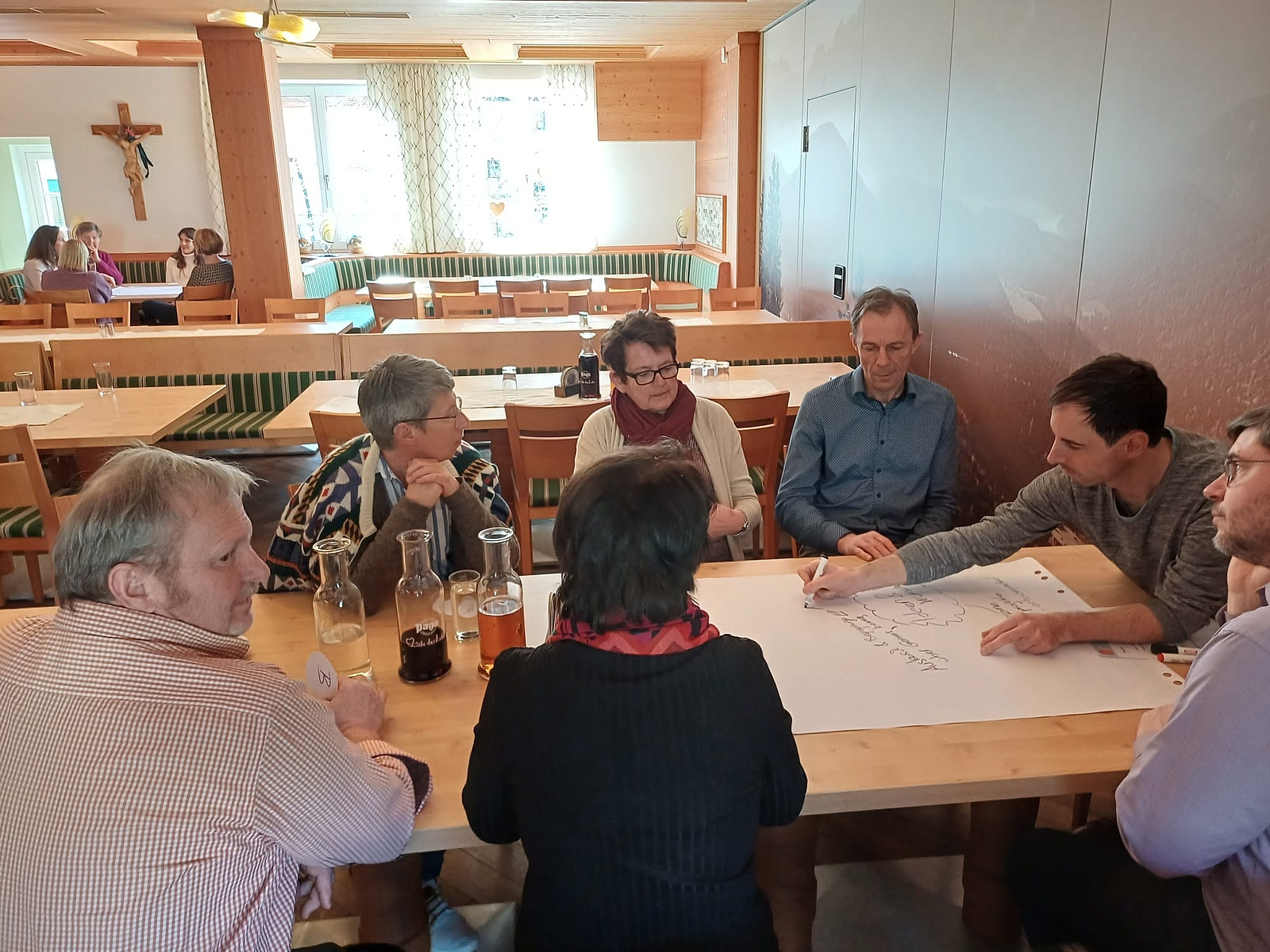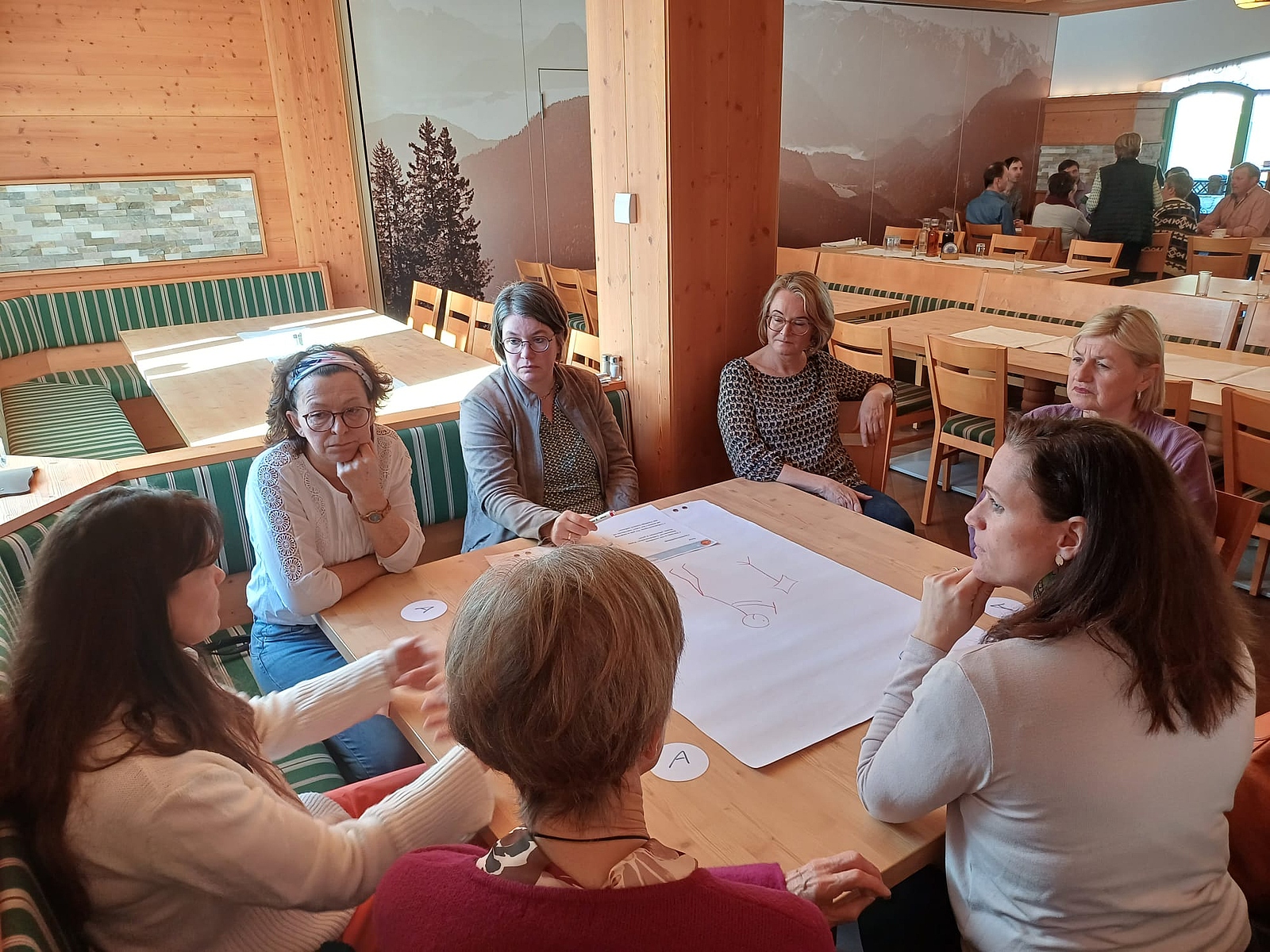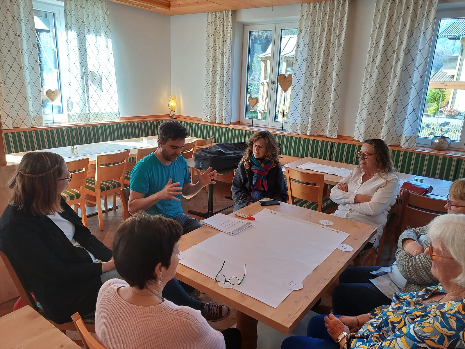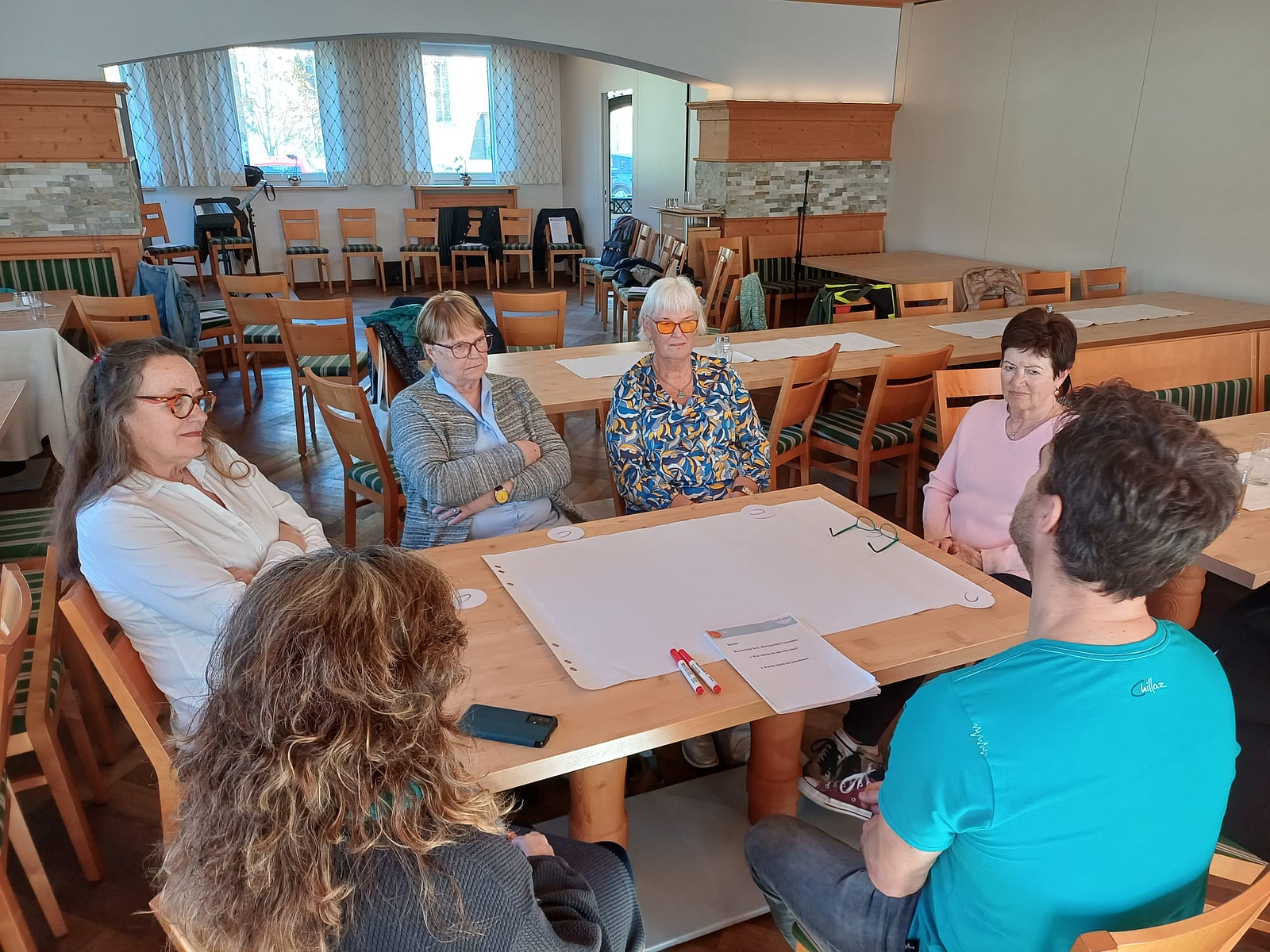 Im zweiten Teil kamen die TeilnehmerInnen zu Wort. In Rahmen eines „World-Cafés“ wurden Fragen zur Chorszene und Ideen, Wünsche und Bedürfnisse erörtert. Beim Austausch wurde der große Wunsch nach gemeinsamen Projekten mit anderen Chören spürbar. Vernetzung und mehr Begegnungen zur Stärkung der regionalen Chorszene wurden deutlich - Projekte und Aktionen mit verstärktem Fokus auf diese Themen werden folgen.
