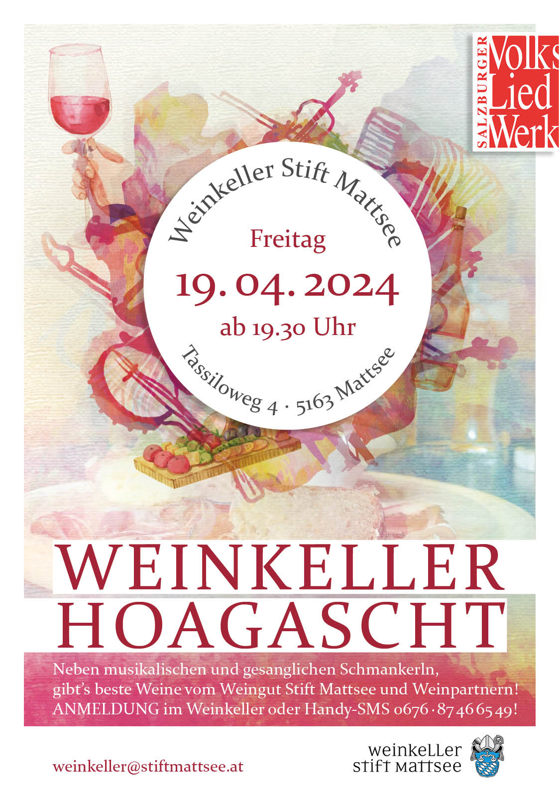 Im Jahr 2022 wurde der Weinkeller-Hoagascht ins Leben gerufen, mit dem Hintergrund, den historischen Weinkeller des Stiftes Mattsee mit Gesang und Musik zu füllen. Gepaart mit einem guten Glaserl Wein, kulinarischen Schmankerl, der Begeisterung und Freude an der Musik und Fröhlichkeit auf beiden Seiten, egal ob Zuhörer oder Aktive.