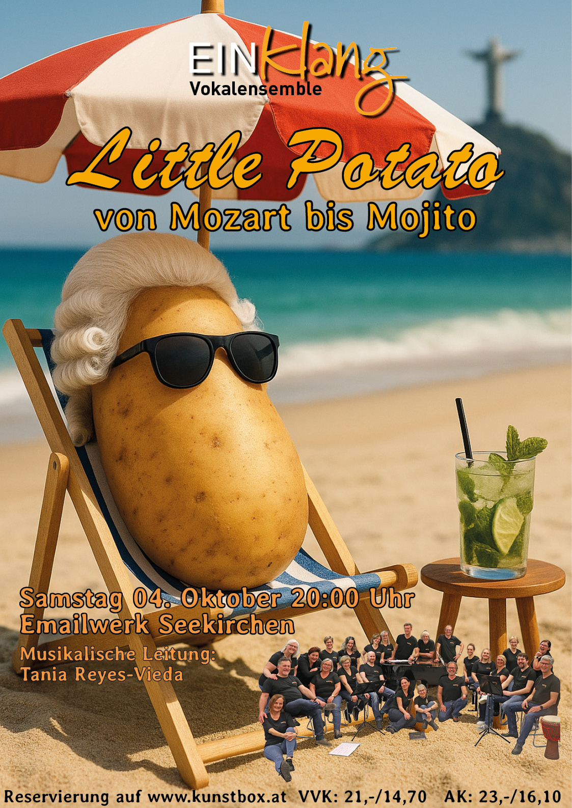Ein Abend, wie eine Kartoffel: rund, in Schale und leicht aus dem Ruder. Also, stellen Sie sich vor: Mozart, Elvis, Kolumbianischer Volkstanz. Eine A-cappella-Truppe mit Ambitionen. Dazu ein Lied über eine Kartoffel – und zwar nicht irgendeine, sondern eine kleine. Und das ist keine Metapher. Das Lied heißt wirklich „Little Potato“. Ein musikalischer Trip querbeet über die Erdkugel und den auditorischen Kortex (und ev. das limbische System). Ein Abend voller Stimmen, ohne Instrumente – na gut, eine Gitarre darf auch mitspielen, aber nur, wenn sie sich benimmt.