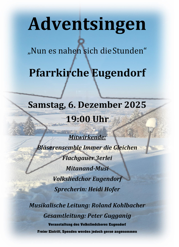 Der Volksliedchor Eugendorf lädt zum Adventsingen in der Pfarrkirche Eugendorf herzlich ein!