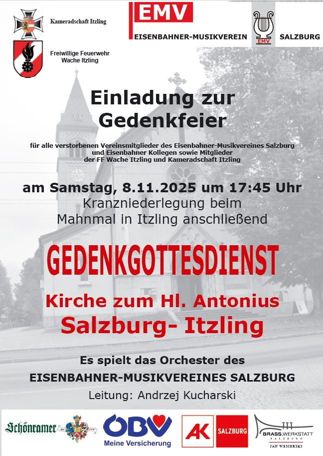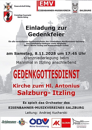 Die Gedenkfeier wird für alle verstorbenen Vereinsmitglieder des EMV Salzburg und Eisenbahner Kollegen sowie Mitglieder der FF Wache Itzling und Kammeradschaft Itzling abgehalten.