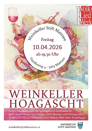 Im Jahr 2022 wurde der Weinkeller-Hoagascht ins Leben gerufen, mit dem Hintergrund, den historischen Weinkeller des Stiftes Mattsee mit Gesang und Musik zu füllen. Gepaart mit einem guten Glaserl Wein, kulinarischen Schmankerl, der Begeisterung und Freude an der Musik und Fröhlichkeit auf beiden Seiten, egal ob Zuhörer oder Aktive.