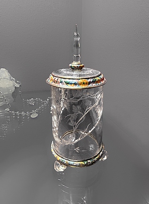 Seit jeher übt der wasserhelle Bergkristall eine besondere Faszination auf den Menschen aus. Bis ins Mittelalter hielt man ihn sogar für versteinertes Eis. Seine große Härte und Sprödigkeit machten die Bearbeitung zu einer technischen Herausforderung. Dennoch gelang es in der Barockzeit, mit der Herstellung aufwendig geschliffener Prunkgefäße die Grenzen des kunsthandwerklich Machbaren auszuloten.
