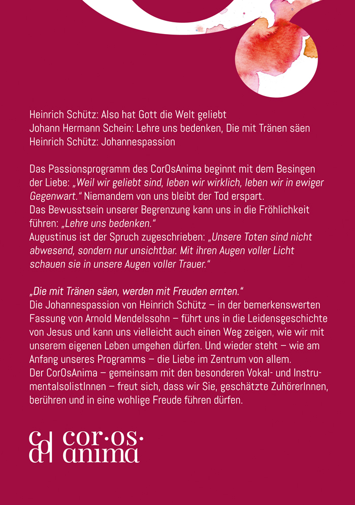 Der Chor CorOsAnima stellt die Johannespassion von Schütz in den Mittelpunkt seines Passionskonzertes.